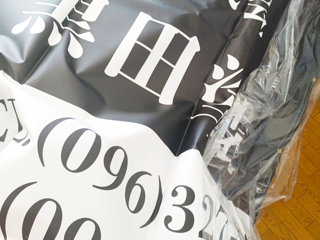 建築現場で使用される足場シート幕、現場シート看板(足場シート看板)は様々など種類や用途に応じていろいろな呼び方をされますが、多くの場合は工事現場の足場に施工している会社がわかるように、会社の社名やロゴ、連絡先、キャッチフレーズなどを大きく表示させることで、周囲への周知にもなるほか、工事現場を見た方、近隣に住んでいる方へ絶大な宣伝にもなりますので、足場を組んだ際は、会社のネームの入った足場看板幕を掲げる事をお勧めいたします。足場用は耐候、耐水のテント生地、ターポリンを使用します。マンション工事など高所の場合は生地をメッシュにすることで風の影響を少なくできるので、高所や大きなサイズにはメッシュターポリンがお勧めです。社内や会社説明会、イベントなどで掲げる、掲示する場合は、布素材をお勧めいたします、会社内の壁に大きな壁掛けにするなどございます。想像力を生かせば、お客様にダイレクトに宣伝を使えることができます。印刷は大判用の塩ビオンデマンド機となりCMYKで高精度で高品質でありながら高彩度の美しい仕上がりを実現しております。熊本では最安値級の足場シート幕、現場シート看板の制作の価格ですが、品質はTOPクラスです。安いからといってその品質に妥協はしておりません。印刷後の実際の仕上がりなどは、サンプルが店舗に御座いますので、お気軽にいつでもご来店ください。